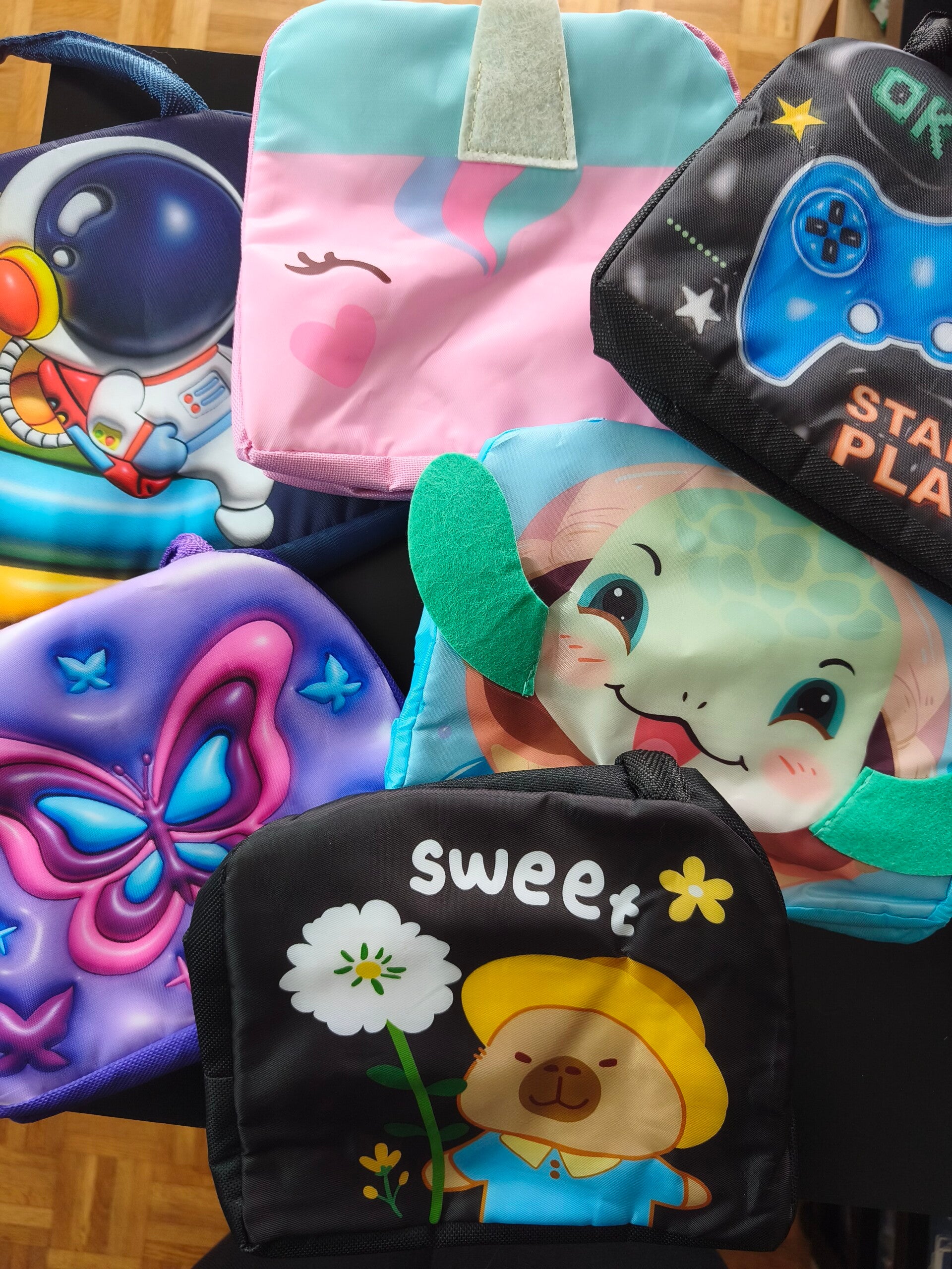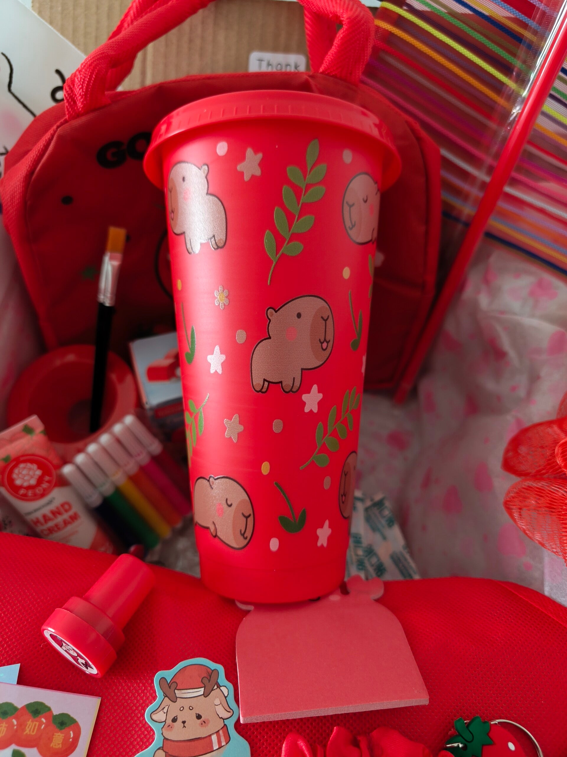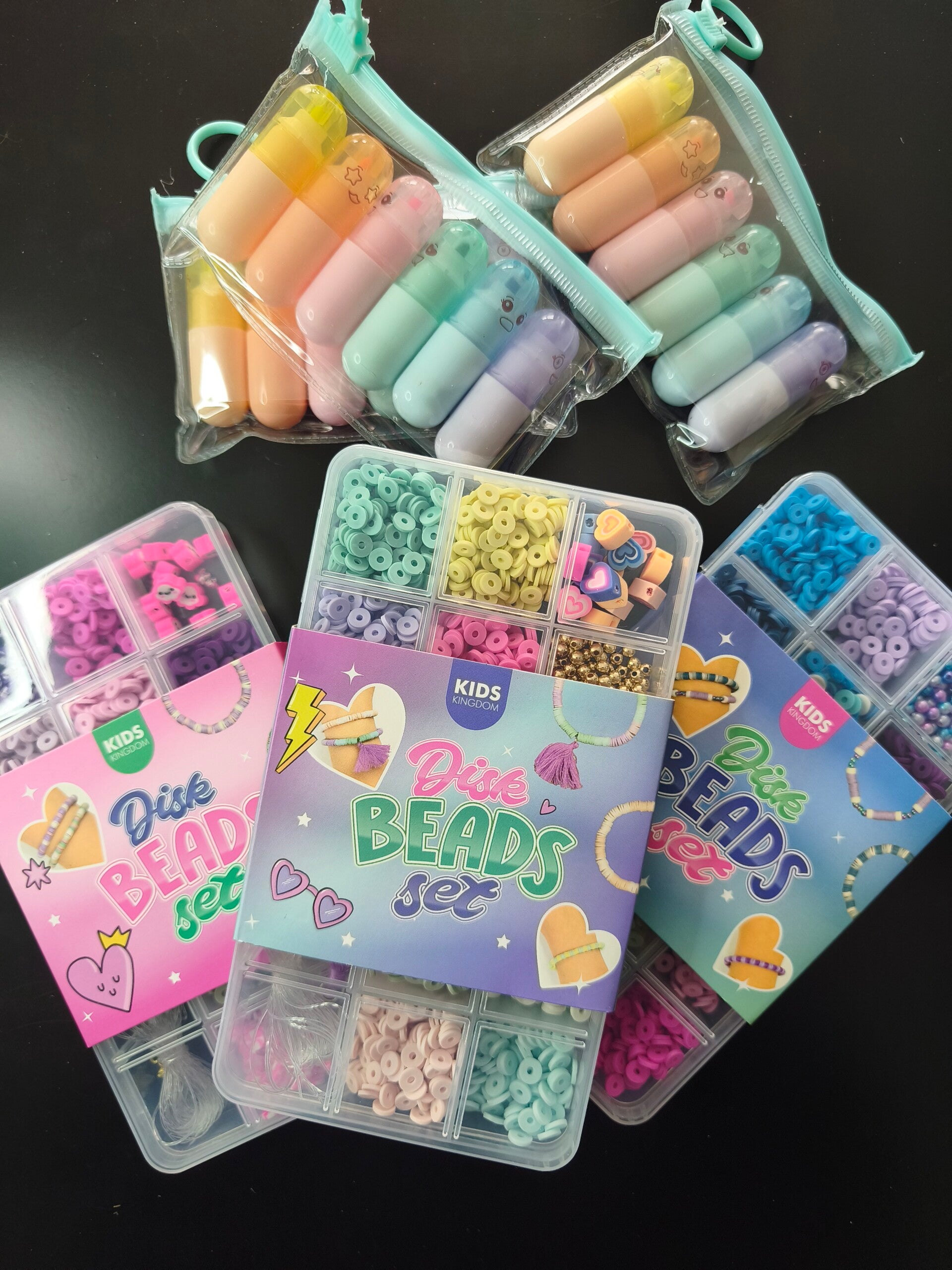 Une peluche, accessoire de papeterie, un lot de beauté - bien-être, une lunch box, une pochette Disney grand format, un parfum, une gourde, un set de perles...